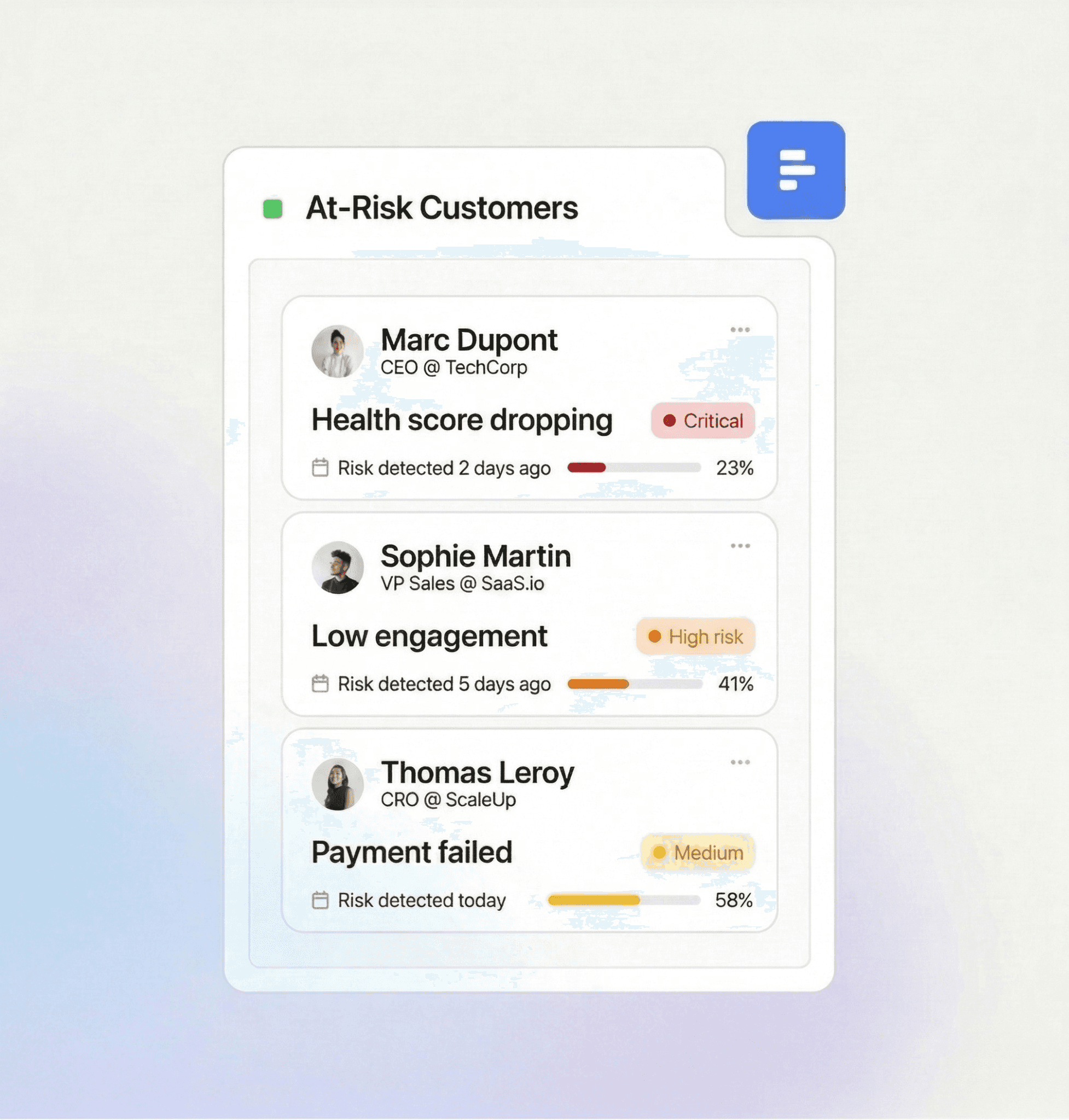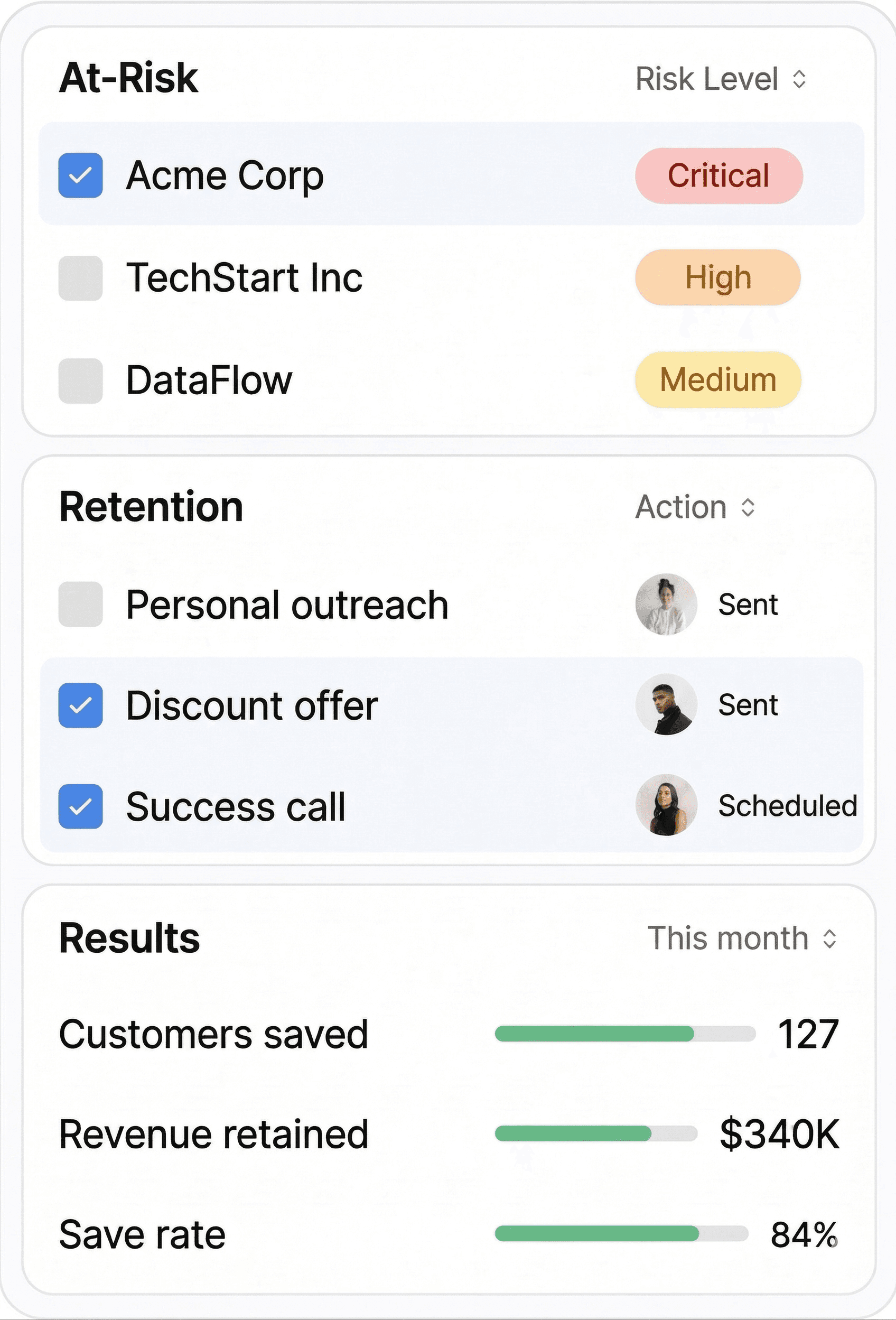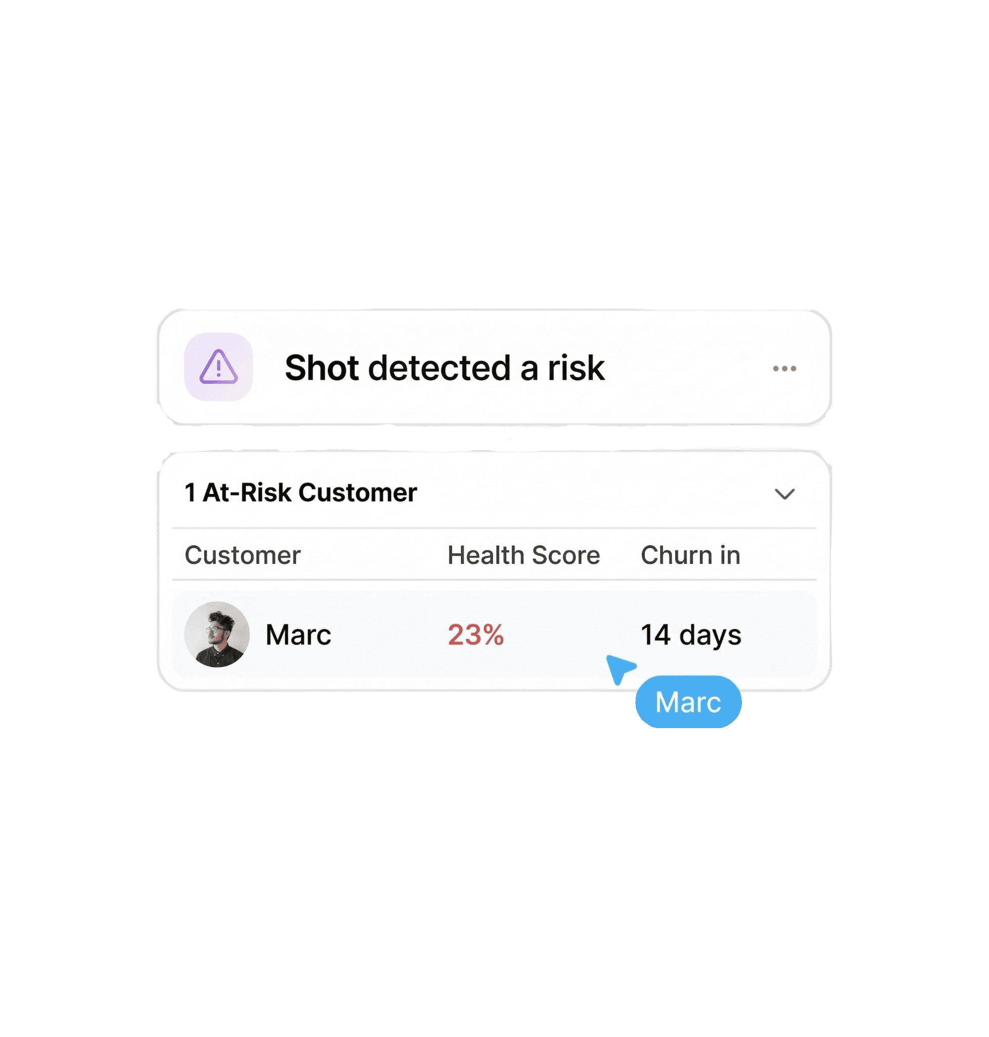 Every churned customer is money walking out the door. Shot gives you weeks to save them.